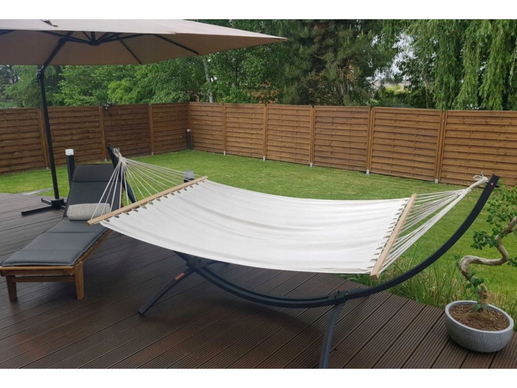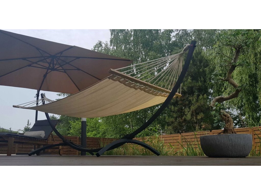 Houpací síť pro dva s dřevěnou výztuhou sítě - rozměr sítě(odpočinkové plochy) je 220 x 160 cm.