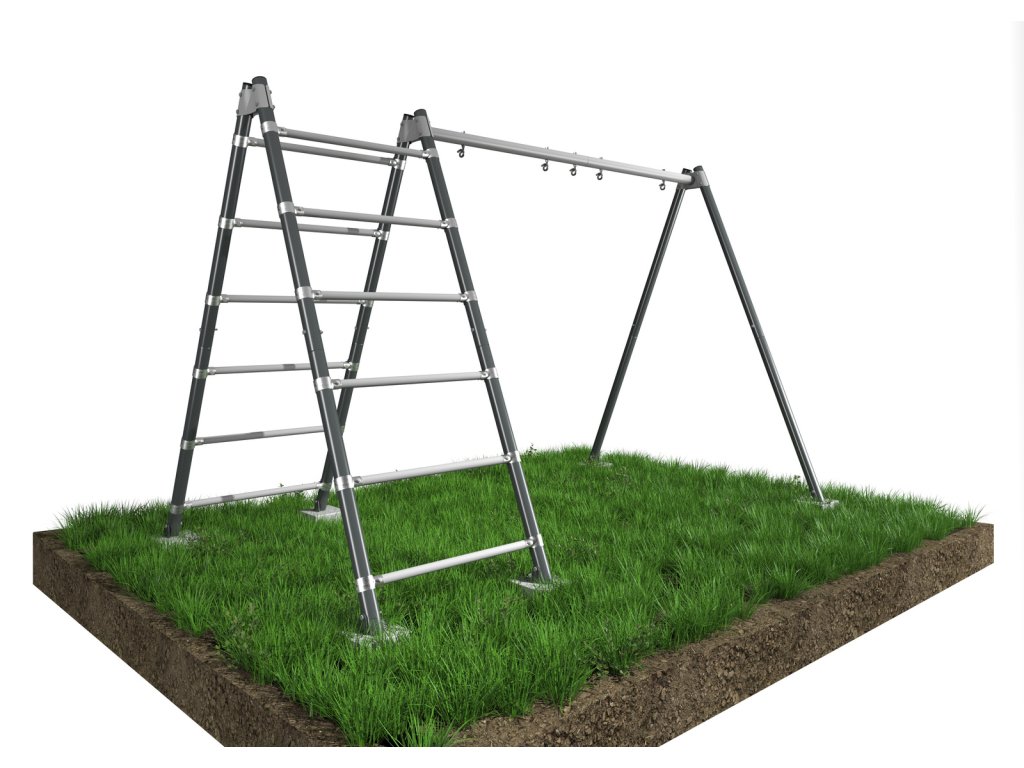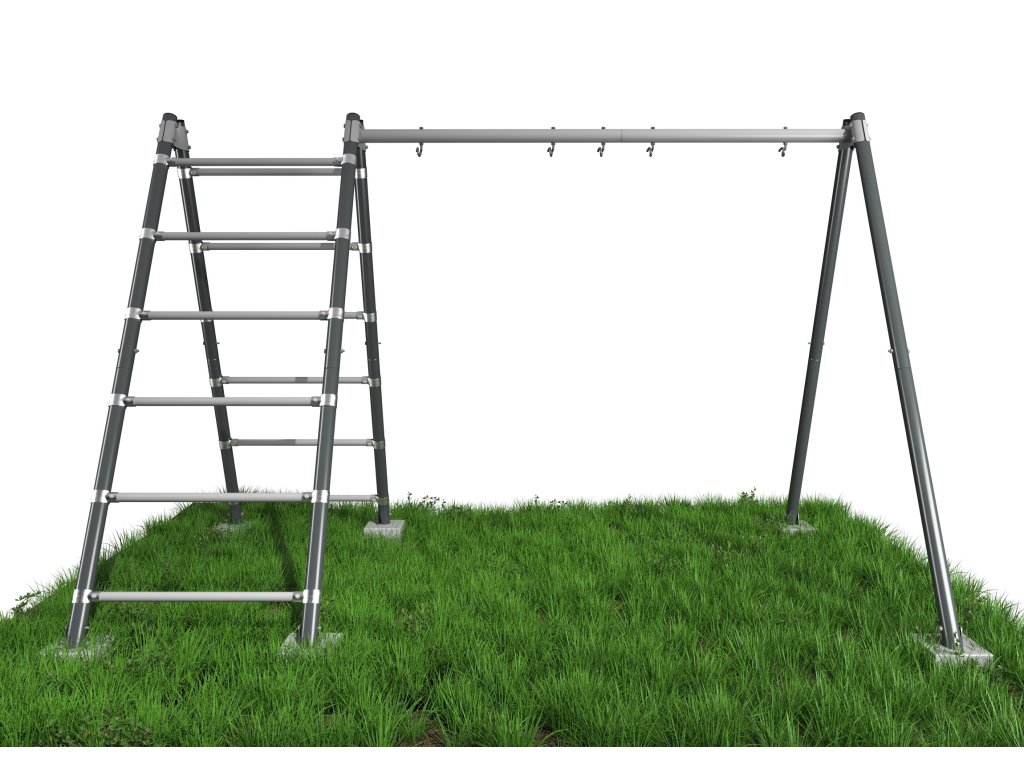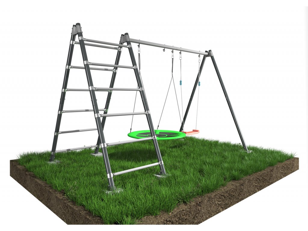 Ocelová houpačka a žebřiny patří na každou zahradu protože nabízí nekonečnou zábavu pro několik dětí zároveň.