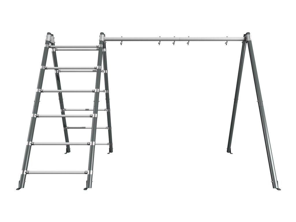 Tento kombinovaný houpačkový rám Vás přesvědčí svými variabilními možnostmi použití. K rámu můžete připevnit dvě herní zařízení, jako je třeba malá houpačka nebo i větší tzv, hnízdo. Vaše děti se tak nikdy nebudou nudit a může přijít letní sezóna. Navíc máte oboustranné žebřiny.